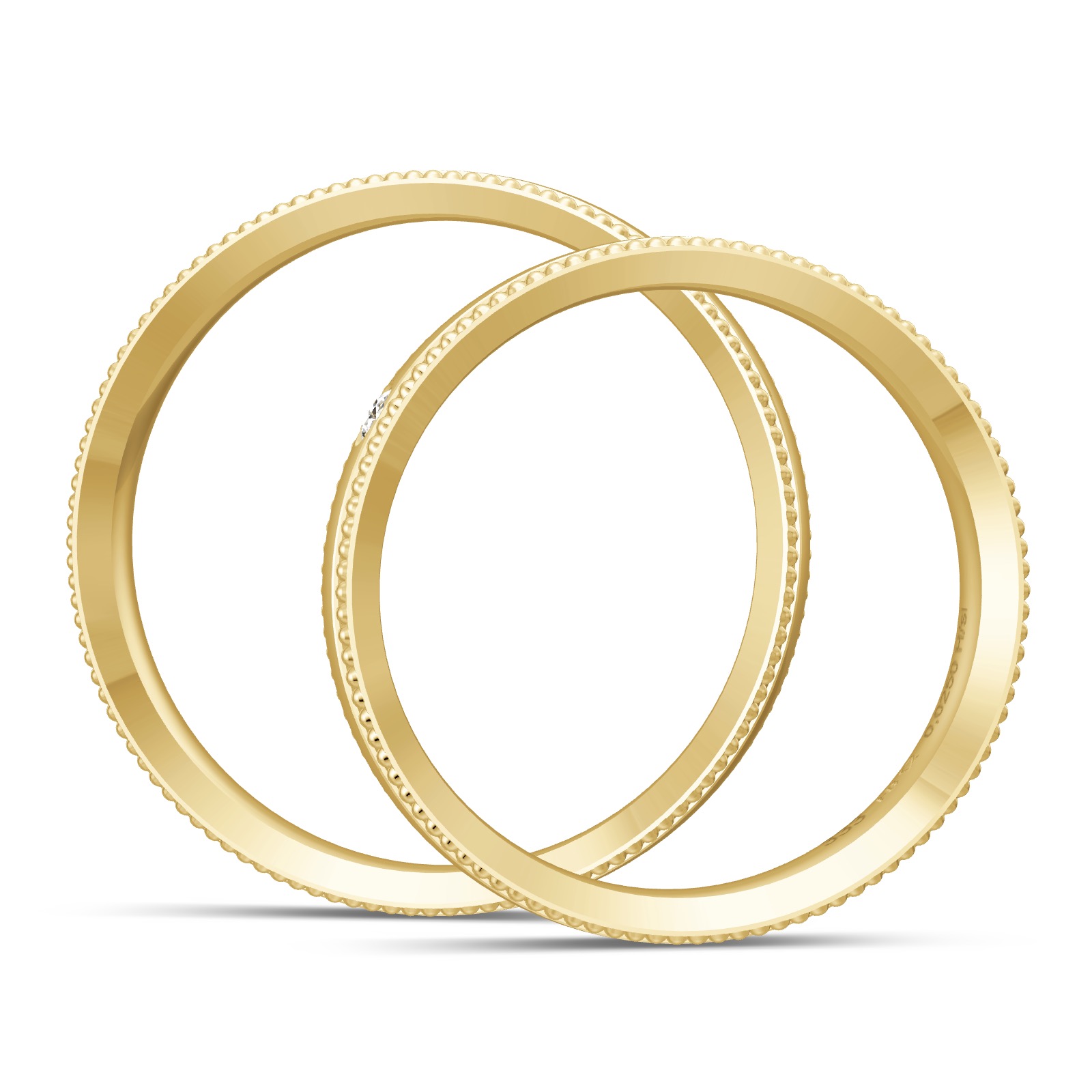 Besondere Eheringe aus Gelbgold mit Diamanten und Millgriff-Design