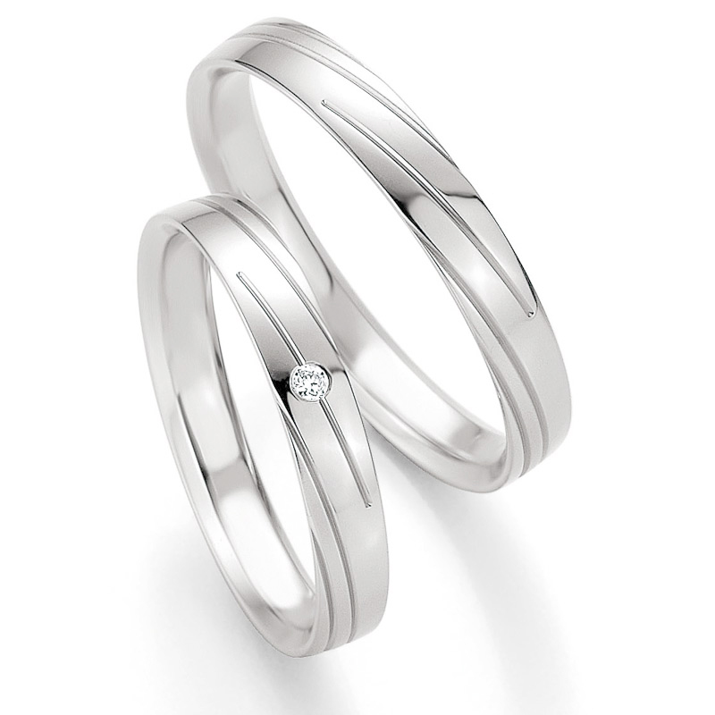 Bezaubernde Trauringe aus Weißgold mit Diamant und Rillen