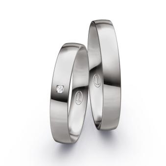 Eheringe aus rhodiniertem Silber 925 mit Zirkonia in Sternenhimmel-Optik und Kreismustern