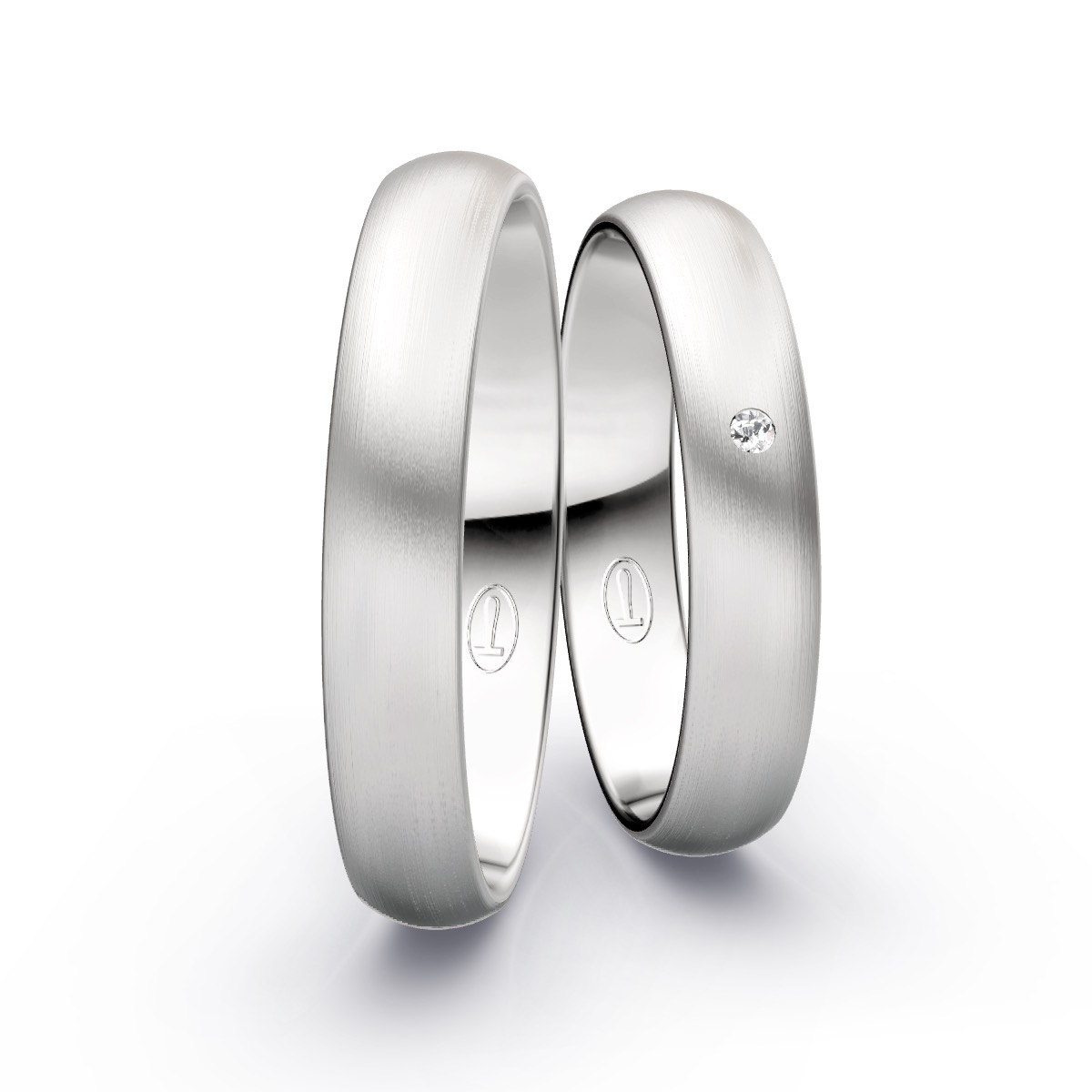 Eheringe aus Silber 925 mit längsmattem Design und weißem Diamanten