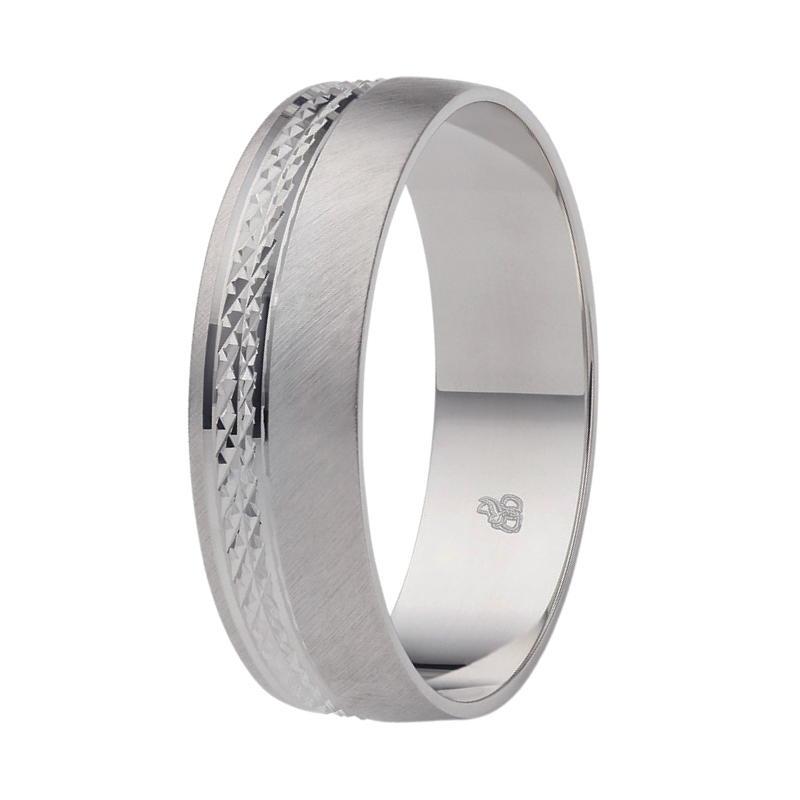 Einmalig schöne Palladium 500 Eheringe mit auffälligem Streifen und Diamanten