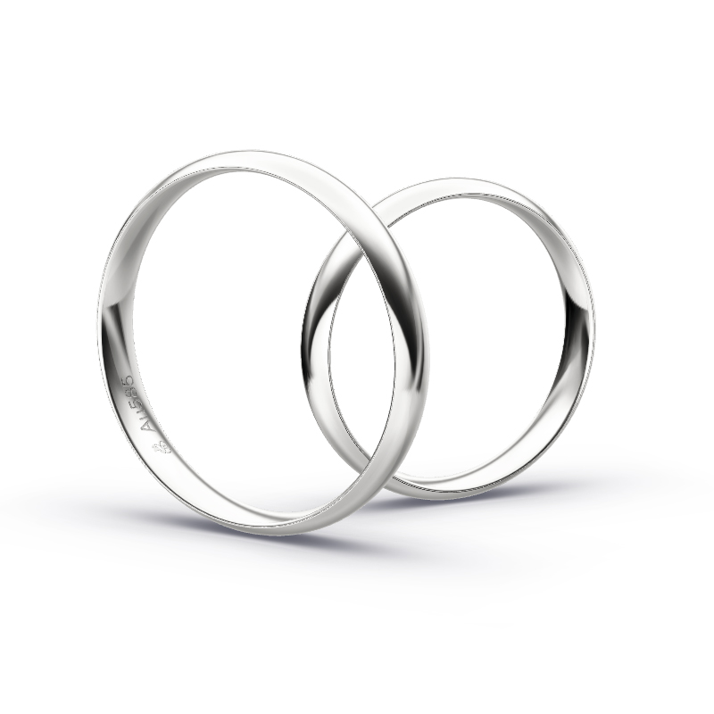Klar und perfekt, so gibt sich die Gestaltung dieses Ringes, der eine elegante Oberflächengestaltung anhand seiner Polierung aufweist. Wegen der Fotografie ist in manchen Perspektiven eine Verdunkelung zu sehen, die aber nicht zur Ringdesign gehört. Dieser Ring trägt einen Spirit in sich, der einfach gehalten ist, aber vom ersten Augenblick an für Begeisterung sorgt. Da er dank seinem Styling sehr beständig wirkt. Die Formsprache dieses nickelfreien Ringes gibt klar zu erkennen – dieses Ringpaar aus Weissgold gilt als Besonderheit, das Raum und Zeit überdauert. Unvergänglich ist die Schönheit, die von diesen Ehe- und Trauringen ausgeht, die eine Breite von 3,5 mm und eine Stärke von 0,9 mm messen. Der geringen Stärke von 1,3 mm ist es zu verdanken, dass dieser feine Ehering aus Weissgold zu einem kostengünstigen Preis zu haben ist. Es darf zwischen 333, 585 und 750 Weissgold gewählt werden.