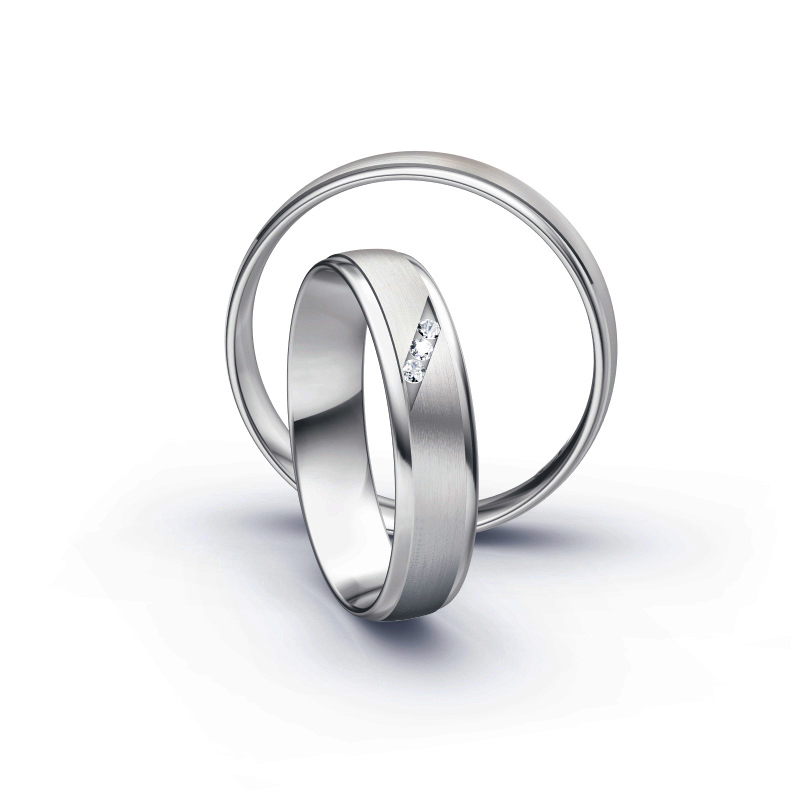 Bereits die Form charakterisiert diese Ringe, da sie sich flach und formschön zeigen. Eine stilvolle Längsmattierung macht bei der Gestaltung der Oberfläche auf sich aufmerksam. Die glänzenden mattierten Ränder geben diesem Ringpaar, das eine Breite von 4,5 mm und eine Stärke von 1,2 mm besitzt, seinen ganz individuellen Ausdruck und vollenden die Ausfertigung dieses nickelfreien Ringmodells. Eine innenseitige Bombierung stellt dem Tragkomfort bei diesem Palladium 500 Ring sicher. Ein Schmuckmaterial, das sich dem trendigen Hochzeitsschmuck verschrieben hat und durch ein hervorragendes Tragefühl überzeugt.