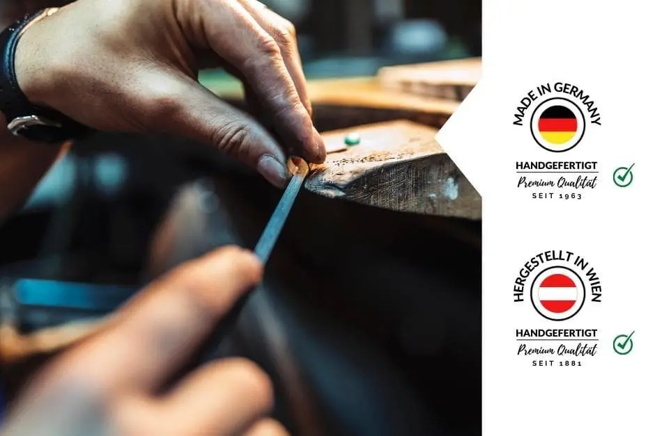 Wir von MYTRAURINGstore arbeiten nur mit ausgewählten Produktionsfirmen zusammen. Wichtig ist uns, dass unsere Manufakturen nur konfliktfreie Diamanten verarbeiten und höchste Ansprüche an die Qualität der verwendeten Materialien stellen! Persönlich haben wir uns hiervon überzeugt und die Manufakturen vor Ort besucht, um deren Verarbeitungs- und Fertigungsprozesse qualitativ unter die Lupe zu nehmen. So haben es drei Manufakturen in Pforzheim geschafft mit ausgewählten Kollektionen ins Sortiment unseres Online-Stores aufgenommen zu werden.