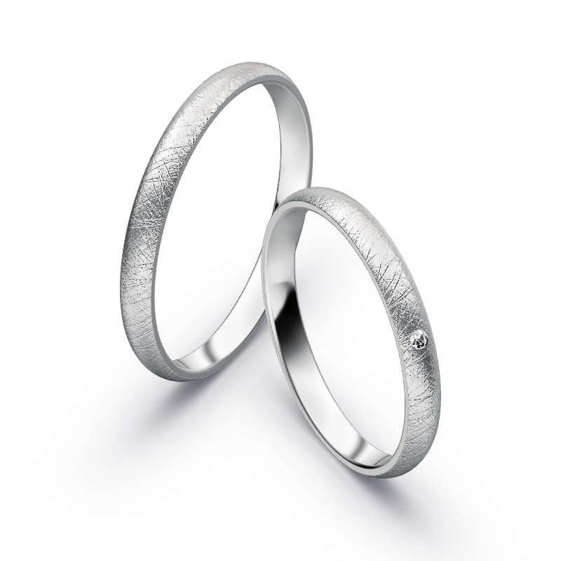 Interessante Eheringe aus Palladium 500 mit Diamant und Eismattierung