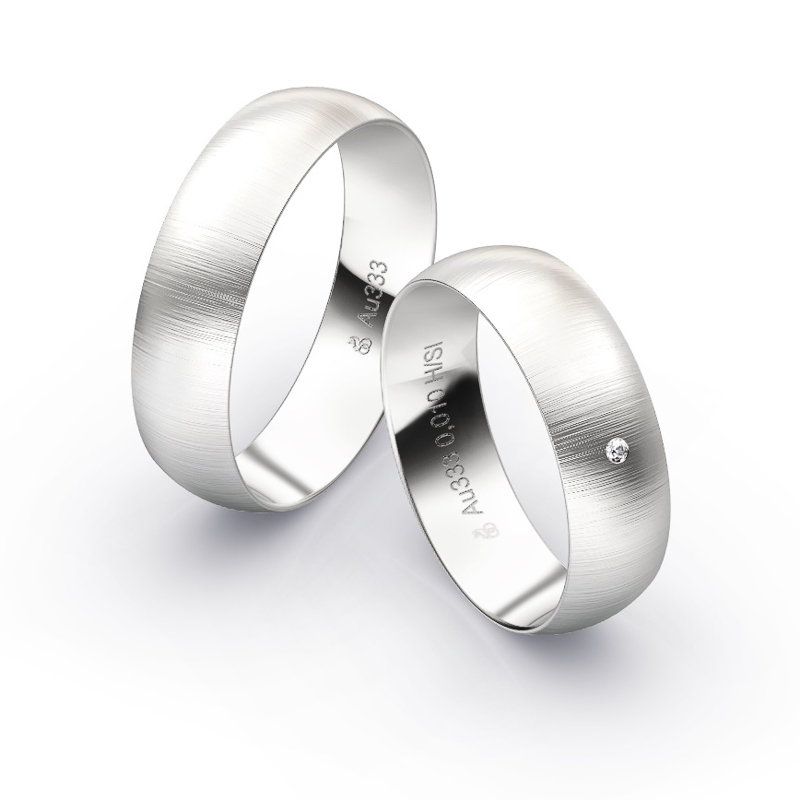 Moderne Eheringe aus Weissgold mit Diamanten in gebürsteter Oberfläche