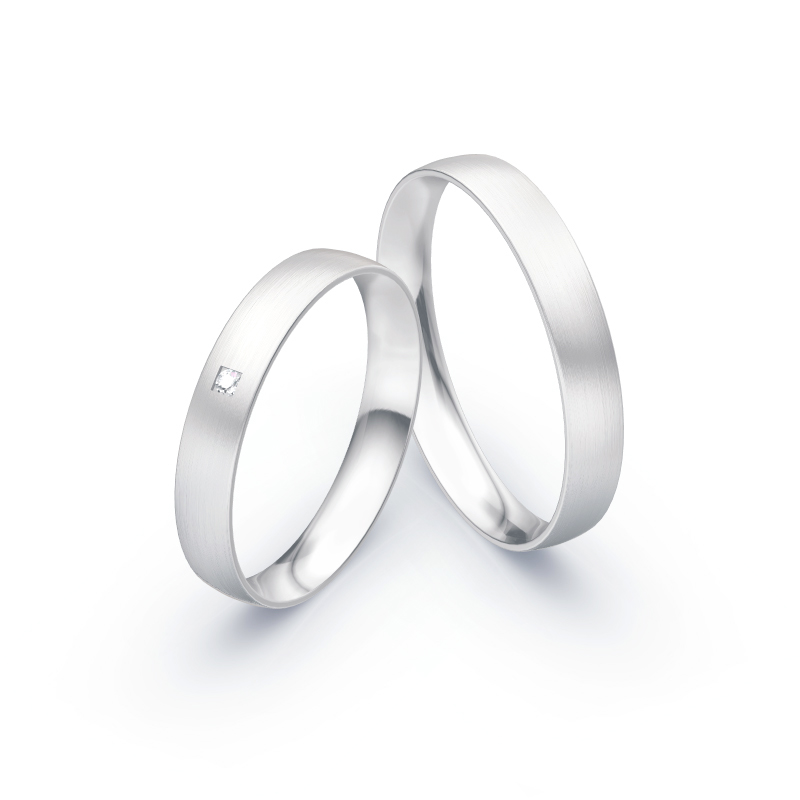 Weißgold ist ein beliebtes Schmuckmaterial zur Herstellung von Eheringen. Der dezente Farbton steht jedem Typ. Außerdem lässt sich dieses Modell hervorragend mit anderen Accessoires kombinieren. Wir wäre es außerdem noch mit einem funkelnden Schmuckstein? Gerne lassen wir für Sie einen weißen 0,015 Karat W/SI Diamanten in die Oberfläche einarbeiten. Der strahlende Diamant fasst einen Durchmesser von 1,5 mm und wird in ein quadratisches Bett, in der Mitte der Oberfläche eingelassen.