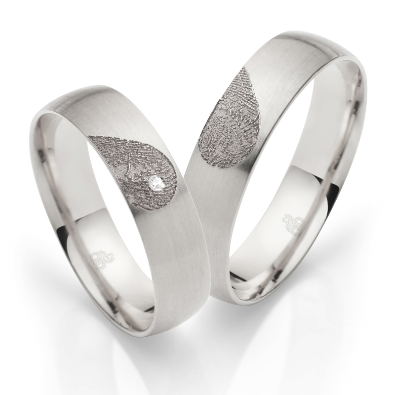 Romantische Eheringe aus Weissgold mit Diamanten und besonderem Herzmuster