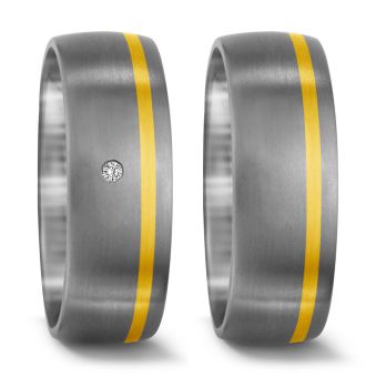 Schmale Eheringe aus Titan mattiert mit Silberstreifen und Brillant